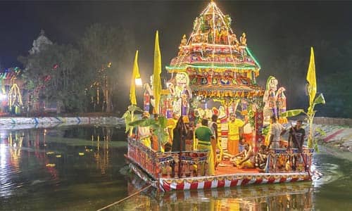 குன்றத்துார் ஒன்றியம், படப்பை அடுத்த, கூழங்கலச்சேரி கிராமத்தில் வெங்கடேசப் பெருமாள் கோவில் அமைந்துள்ளது. இக்கோவிலில், ஆண்டுதோறும் புரட்டாசி மாதம் 3வது சனிக்கிழமை தெப்ப உத்சவ திருவிழா நடப்பது வழக்கம். இந்த ஆண்டு திருவிழா நேற்று முன்தினம் நடந்தது. மாலை 4:00 மணிக்கு வெங்கடேசப் பெருமாளுக்கு திருக்குடை சகல அழைப்பு, சாத்துபடி மாலை அலங்காரங்கள் நடந்தன. மாலை 6:00 மணிக்கு திருமலை ஸ்ரீபாதம் ஒய்யாலி நடன ஆட்டத்தை தொடர்ந்து, அலங்கரிக்கப்பட்ட தெப்பத்தில் வெங்கடேச பெருமாள் எழுந்தருளி, பவனி வந்து அருள்பாலித்தார். இதில், கூழங்கலச்சேரி, செரப்பனஞ்சேரி, வைப்பூர், காரணித்தாங்கல், பேரிஞ்சம்பாக்கம் உள்ளிட்ட கிராமங்களைச் சேர்ந்த பக்தர்கள் பங்கேற்றனர்.