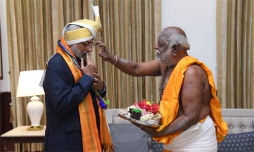 காசியில் வாசி அவிநாசி என்ற புகழ்பெற்றதும், கொங்கேழு சிவாலயங்களில் முதன்மையானதாக விளங்கும் ஸ்ரீ கருணாம்பிகை உடனமர் அவிநாசி லிங்கேஸ்வரர் கோவிலில் உள்ள காலபைரவர் மிகவும் சக்தி வாய்ந்ததாகும். மாதந்தோறும் தேய்பிறை அஷ்டமியில் காலபைரவருக்கு 16 வகையான திரவியங்களில் அபிஷேகம் மற்றும் ஆராதனைகள் நடைபெற்று அலங்காரம் செய்யப்படும். அதில் மாதந்தோறும் முன்னாள் மகாராஷ்டிரா கவர்னர் ராதாகிருஷ்ணனுக்கு சிறப்பு வழிபாடு அர்ச்சனைகள் நடைபெறுவது வழக்கம். தற்போது துணை ஜனாதிபதியாக பதவியேற்ற பிறகு தேய்பிறை அஷ்டமியில் அவிநாசி லிங்கேஸ்வரர் கோவிலில் உள்ள காலபைரவருக்கு சிறப்பு அபிஷேகம், ஆராதனைகள் நடைபெற்று துணை ஜனாதிபதி ராதாகிருஷ்ணன் பெயருக்கு அர்ச்சனை மற்றும் வழிபாடுகள் செய்யப்பட்டது. பின்னர் பிரசாதத்தை கோவில் குருக்கள் சிவக்குமார் சிவாச்சாரியார் ,நேற்று மாலை டெல்லியில் உள்ள துணை ஜனாதிபதி மாளிகையில் இந்திய துணை ஜனாதிபதி ராதாகிருஷ்ணனை நேரில் சந்தித்து பிரசாதத்தை கோவில் சார்பில் வழங்கினார். பின்னர் துணை ஜனாதிபதிக்கு பரிவட்டம் கட்டி கோவில் தலபுராணம் மற்றும் ஸ்ரீ கருணாம்பிகை உடனமர் அவிநாசி லிங்கேஸ்வரர் உள்ள புகைப்படம் அடங்கிய போட்டோ பிரேம் சிவக்குமார் சிவாச்சாரியார் சார்பில் வழங்கினார்.