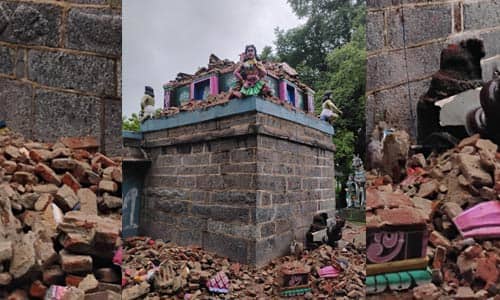 சிறுபாக்கம் அடுத்த பொயனப்பாடியில் பிரசித்தி பெற்ற ஆண்டவர் செல்லியம்மன் கோவில் உள்ளது. இங்கு, சேலம், ஆத்தூர், நாமக்கல், கடலூர், பெரம்பலூர் பகுதியைச் சேர்ந்தவர்களின் குல தெய்வமாக உள்ளது. இந்நிலையில், கடந்த சில ஆண்டுகளுக்கு முன்பு, கோவில் புனரமைப்பு மகா கும்பாபிஷேகம் நடந்தது. இந்நிலையில், பருவமழை காரணமாக கடந்த சில நாட்களாக சிறுபாக்கம் மற்றும் அதன் சுற்றுப்புற கிராமங்களில் தொடர் மழை பெய்து வருகிறது. நேற்று பெய்த மழையால் சிறுபாக்கம் அடுத்த பொயனப்பாடியில் பிரசித்தி பெற்ற ஆண்டவர் செல்லியம்மன் கோவில் கோபுரம் இடிந்து விழுந்தது. இன்று காலை இதனையறிந்த பக்தர்கள் அதிர்ச்சி அடைந்தனர்.