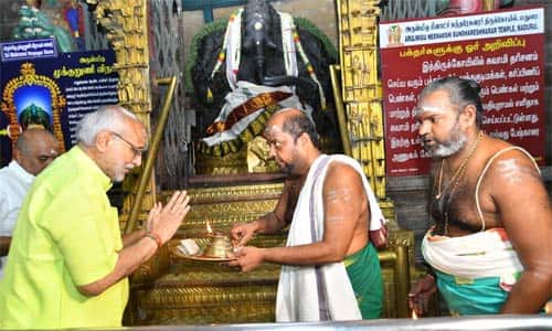 மதுரை; மதுரை மீனாட்சி அம்மன் கோயிலில் துணை ஜனாதிபதி சி.பி.ராதாகிருஷ்ணன் சுவாமி தரிசனம் செய்தார்.