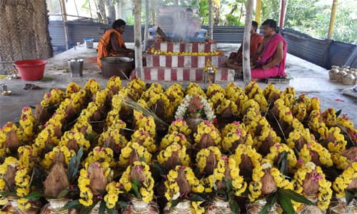 மதுரமங்கலம் அடுத்த, கண்ணன்தாங்கல் கிராமத்தில், 108 சக்தி பீடம் என அழைக்கப்படும், ஸ்வர்ண காமாட்சி கோவில் உள்ளது. உலக நன்மை வேண்டி, 108 கலசங்களுக்கு இன்று காலை, 8:00 மணி அளவில் யாக சாலையில் சிறப்பு பூஜைகள் செய்யப்பட்டன. இன்று மதியம் 1:00 மணி அளவில் 108 அம்மனுக்கும் சிறப்பு அபிஷேகம் மற்றும் ஆராதனை நடந்தது. இதையடுத்து, 108 சக்தி கோவில்களில், அபிராமி அந்தாதி மற்றும் துர்கா பஞ்சரத்னத்தை பல்வேறு நாடுகளில் இருந்து வந்த சுமங்கலி பெண்கள் பாராயணம் செய்தனர். மேலும், லலிதா சகஸ்ரநாமம் பாரயணம் செய்தனர்.