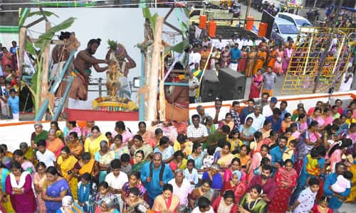 பொள்ளாச்சி அருகே, புளியம்பட்டி உச்சி மாகாளியம்மன் கோவிலில் மஹா கும்பாபிஷேக விழா நேற்று காலை, 6:00 மணிக்கு திருவிளக்கு வழிபாடு, விக்னேஸ்வர பூஜை, தேவதா அனுக்ஞை, கணபதி ேஹாமம் உள்ளிட்ட சிறப்பு பூஜைகளுடன் துவங்கியது. தொடர்ந்து, தீர்த்த குடம் எடுத்து வருதல், புற்றுமண், முளைப்பாரிகை, சகல மேலதாளங்கள் முழங்க ஊர்வலம் நடந்தது. விக்னேஸ்வர பூஜை, புண்யாகவாசம், முதல் கால யாக வேள்வி, அஷ்டபந்தன மருந்து சாற்றுதல் உள்ளிட்ட பூஜைகள் நடைபெற்றன. இன்று காலை, 4:00 மணிக்கு விக்னேஸ்வர பூஜை, இரண்டாம் கால யாக வேள்விகள், மூல மந்திர ேஹாமம் உள்ளிட்ட சிறப்பு ேஹாம பூஜைகள் நடந்தது. காலை, 6:10 மணிக்கு விமான கோபுர கும்பாபிேஷகம், மூல மூர்த்தியான உச்சி மாகாளியம்மனுக்கு மஹா கும்பாபிஷேகம் நடைபெற்றது. எம்.எல்.ஏ. பொள்ளாச்சி ஜெயராமன், எம்.பி. ஈஸ்வரசாமி, கொ.ம.தே.க. துணை பொதுச் செயலாளர் நித்தியானந்தன் மற்றும் முக்கிய பிரமுகர்கள், கோவில் நிர்வாகிகள் பங்கேற்றனர். தொடர்ந்து, பக்தர்களுக்கு அன்னதானம் வழங்கப்பட்டது. தொடர்ந்து, மஹா அபிஷேகம், தச தரிசனம், தச தானம், சர்வ அலங்கார மகா தீபாராதனை உள்ளிட்ட பூஜைகள் நடைபெற்றன.