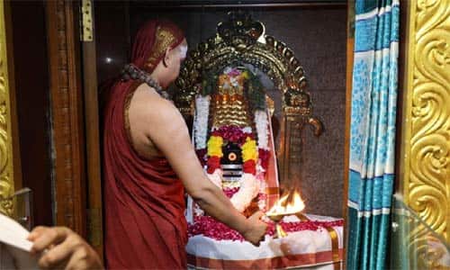 ஸ்ரீ ராமர், காமேஸ்வரர், காமேஸ்வரி, ஹனுமன் மற்றும் பிற தெய்வங்களின் தரிசனத்தை முடித்தபின், கோவிலுக்கு அடுத்துள்ள மைதானத்தில் அமைக்கப்பட்டிருந்த மேடையிலிருந்து 350-க்கும் மேற்பட்ட பக்தர்களுக்கு ஆசி வழங்கினார். 1956-ல் பஜனை மண்டலியாக தொடங்கிய இந்த ஆலயத்திற்கு 2002-ல் நிலம் ஒதுக்கப்பட்ட வரலாறு குறித்து சமர்பிக்கப்பட்டது. தொடர்ந்து சுவாமிகள் பக்தர்களுக்கு அருளாசி வழங்கி பேசியதாவது: