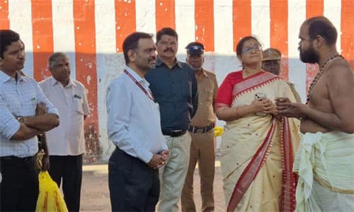 ஸ்ரீவில்லிபுத்துார்: விருதுநகர் மாவட்டம் ஸ்ரீவில்லிபுத்துார் ஆண்டாள் கோயிலில் இந்திய தேர்தல் ஆணையத்தின் துணை கமிஷனர் பானு பிரகாஷ் யத்ரு, தமிழ்நாடு தலைமை தேர்தல் அதிகாரி அர்ச்சனா பட்நாயக் நேற்று தரிசனம் செய்தனர். நேற்று அதிகாலை மதுரையில் இருந்து புறப்பட்டு காலை 7:30 மணிக்கு ஆண்டாள் கோயிலுக்கு காரில் வந்தனர். விருதுநகர் கலெக்டர் சுகபுத்ரா, மாவட்ட வருவாய் துறை அலுவலர்கள் அவர்களை வரவேற்றனர். பின்னர் ஆண்டாள் கோயில், வடபத்ர சாயி சன்னதியில் அவர்கள் தரிசனம் செய்தனர். ஒரு மணி நேரத்துக்கும் மேலாக தரிசனம் செய்த பின் மதுரை சென்றனர்.