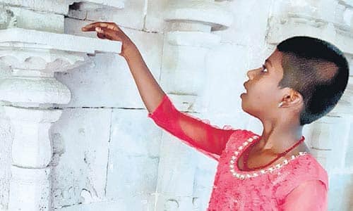 ராமநாதபுரம்: கோயில்களில் உள்ள கோபுரம், விமானத்தின் கட்டுமான கலைகள் குறித்து  திருப்புல்லாணி சுரேஷ் சுதா நினைவு அரசு மேல்நிலைப்பள்ளி எட்டாம் வகுப்பு  மாணவி டோனிகா 13, கற்றுத்தேர்ந்து தனது அபார திறமையால் அசத்தி வருகிறார்.