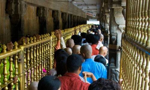 திருப்பதி :திருமலை ஏழுமலையானை தரிசிக்க பக்தர்கள் 18 மணிநேரம் காத்திருந்தனர். திருமலைக்கு வரும் பக்தர்களின் எண்ணிக்கை சற்று குறைந்திருந்த நிலையில் அரையாண்டு தேர்வு முடிந்து பள்ளிகளுக்கு விடுமுறை விடப்ட்டுள்ளதால் நேற்று முதல் மீண்டும் பக்தர்களின் வருகை அதிகரித்துள்ளது. அதனால் திருமலையில் உள்ள வைகுண்டம் காத்திருப்பு வளாகத்தில் உள்ள 31 அறைகளில் பக்தர்கள் தரிசனத்திற்காக காத்திருக்கின்றனர்.அவர்கள் 18 மணிநேர காத்திருப்பிற்கு பின் தரிசனத்திற்கு அனுமதிக்கப்படுகின்றனர். நேற்று முன்தினம் 66 ஆயிரம் பேர் ஏழுமலையானை தரிசித்தனர்; 25 ஆயிரம் பக்தர்கள் தலைமுடி காணிக்கை செலுத்தினர்.