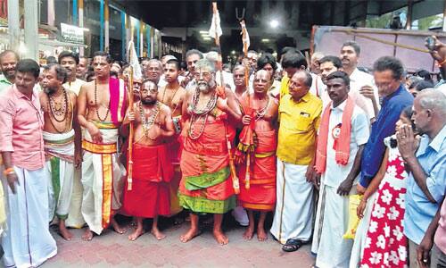 பஜ்ரங்தள் மாநில அமைப்பாளர் சரவணகார்த்திக் முன்னிலை வகித்தார். ஸ்ரீவில்லிபுத்துார் சடகோபராமானுஜ ஜீயர், மன்னார்குடி செண்டலங்கார செண்பக ராமானுஜ ஜீயர், கோவை நாராயண ராமானுஜ ஜீயர், டெல்லி விஷ்ணு சித்தராமானுஜ ஜீயர், நேபாள் பராங்குச ராமானுஜ ஜீயர், ஸ்ரீரங்கம் கோயில் ஸ்தலத்தார் பத்ரி பராசர பட்டர், விசுவ ஹிந்து பரிஷத் தென்தமிழக செயல் தலைவர் ராஜமாணிக்கம், ஒருங்கிணைப்பாளர் விஜயரங்கன் பேசினர். பின்னர் ஆண்டாள் ஆடிப்பூர பந்தலில் இருந்து ஜீயர்கள் பங்கேற்ற ஊர்வலத்தை, தொழிலதிபர் ராமராஜ் துவக்கி வைத்தார். ஆயிரத்திற்கும் மேற்பட்ட பக்தர்கள், திருப்பாவை பாடல்களை பாடிக்கொண்டு, நான்குரத வீதிகளிலும் ஊர்வலமாக வந்தனர். கோதை நாச்சியார் தொண்டர்குழாம் நாம பிரச்சாரசபா குழுவினரும், ஒருங்கிணைப்பாளர் ராமசுப்பு பங்கேற்றனர். தொழிலதிபர் சரவணதுரைராஜா நன்றி கூறினார்.