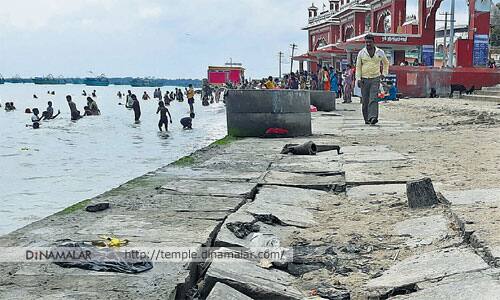 இந்நிலையில், அக்னி தீர்த்த கடற்கரையை அழகுப்படுத்த மத்திய அரசு வழங்கிய ரூ.20 லட்சம் சுற்றுலா நிதியில் கடற்கரையில் சிமென்ட் சிலாப் கல்லில் நடை பாதை அமைத்தனர். இந்த நடை பாதை கட்டுமானம் தரமின்றி இருப்பதாக, பணி நடக்கும் போதே இந்து அமைப்பினர் புகார் அளித்தனர். ஆனால், அதனை பொருட்படுத்தாமல் தரமின்றி நடை பாதை அமைத்ததால், தற்போது கடல் அலையில் நடை பாதை சேதம் அடைந்து பள்ளமாகியது. இப்பள்ளத்தில் கூட்ட நெரிசலில் பக்தர்கள் சிக்கி காயம் அடைகின்றனர். எனவே பக்தர்கள் நலன் கருதி சேதமடைந்த நடை பாதையை சீரமைக்க கலெக்டர் வீரராகவ ராவ் உத்தரவிட வேண்டும்.
