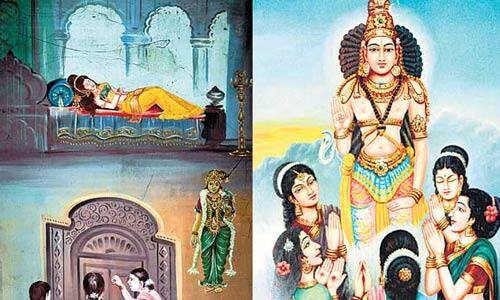 பொருள்: குத்து விளக்கெரிய, யானைத் தந்தத்தால் ஆன கட்டில் மேல் விரிக்கப்பட்ட மிருதுவான பஞ்சுமெத்தையில், விரிந்த கொத்தாக பூ சூடிய நப்பின்னையின் மார்பில் தலை வைத்து கண் மூடியிருக்கும் மலர் மாலை தரித்த கண்ணனே! நீ எங்களுடன் பேசுவாயாக. மை பூசிய கண்களை உடைய நப்பின்னையே! நீ உன் கணவனாகிய கண்ணனை எவ்வளவு நேரமானாலும் துாக்கத்தில் இருந்து எழுப்புவதில்லை. காரணம், கணநேரம் கூட அவனைப் பிரிந்திருக்கும் சக்தியை இழந்து விட்டாய். இப்படி செய்வது உன் சுபாவத்துக்கு தகுதியாகுமா?