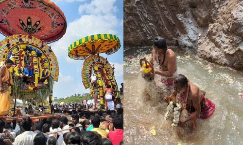திருவண்ணாமலை : திருவண்ணாமலை, கலசப்பாக்கம் ஆற்றில் அண்ணாமலையாருக்கு சூலம் ரூபத்தில் தீர்த்தவாரி நடந்தது.