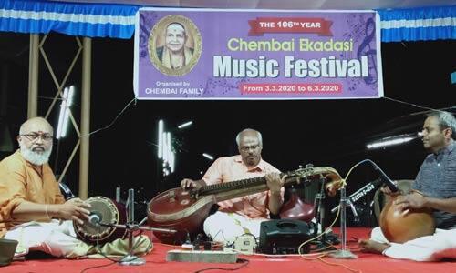 பாலக்காடு: செம்பை பார்த்தசாரதி கோவிலில் 106-வது ஏகாதசி உற்சாகத்தையொட்டி நடந்துவரும் சங்கீத உற்சவம் இன்று நிறைவு பெறுகின்றன. பாலக்காடு மாவட்டம் கோட்டாயி செம்பை பார்த்தசாரதி கோவில் மாசி மாதம் திருவிழா ஏகாதசி திருவிழா கடந்த 2-ம் தேதிகொடி ஏற்றத்துடன் துவங்கின. விழாவையொட்டி நடந்து வரும் நான்கு நாள் சங்கீத உற்சவம் கடந்த 3ம் தேதி பத்மபூஷன் டி.வி., கோபாலகிருஷ்ணன், துவக்கி வைத்தார். சங்கீத உற்சவத்தின் மூன்றாவது நாளான நேற்று மாலை 6 மணியளவில் மூழி குளம் விவேகின் கச்சேரி நடைபெற்றன.இவருக்கு வயலினில் கொடுந்திரபுள்ளி சுப்பராமனும் மிருதங்கத்தில் கொடுத்திரப்புள்ளி பரமேஸ்வரனும் முகர்சங்கில் வெளிநேழி ரமேஷும் பக்கவாத்தியம் வாசித்தார். இதையடுத்து பைஜு.என்.ரஞ்சித்தின் வீணைக் கச்சேரி நடந்தன. இவருக்கு மிருதங்கத்தில் சேர்த்தலை தினேஷும் கடத்தில் ஏலம்குளம் தீபுவும் பக்கவாத்தியம் வாசித்தனர்.