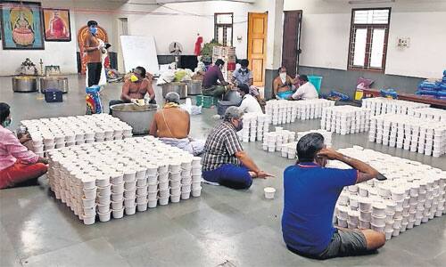 தி.நகர் : சிருங்கேரி மடம் சார்பாக, தினமும், 4,000 ஏழை மக்களுக்கு மதிய உணவு வழங்கப்படுகிறது.