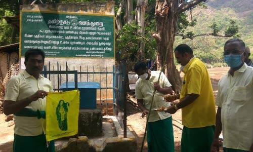 பளியன்குடி: பத்தினி தெய்வம் கண்ணகி அம்மன் கோயிலில் சித்திரை பவுர்ணமி விழாவை முன்னிட்டு, பளியன்குடியில் கொடியேற்ற நிகழ்வு, சமூக இடைவெளியுடன் சிறப்பாக நடைபெற்றது. ஊரடங்கு உத்தரவு காரணமாக பக்தர்கள் யாரும் அனுமதிக்கப்படவில்லை.
