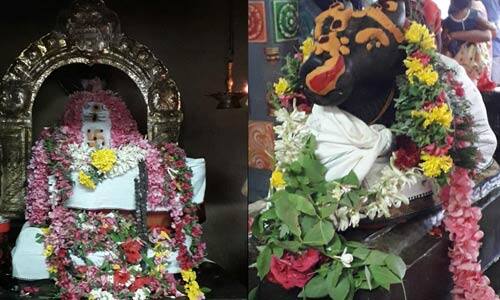 பக்தர்கள் அனைவரும் முகக் கவசம் அணிந்து, சமூக இடைவெளியில், சுவாமி தரிசனம் செய்தனர். முன்னதாக நந்தியம் பெருமாளுக்கும், சுவாமிக்கும் எண்ணெய் காப்பு சாற்றி, திரவியம், மஞ்சள், பஞ்கவ்யம், பால், தயிர், இளநீர், கரும்பு சாறு , தேன், பஞ்சாமிர்தம், ஸ்வர்ணம், சந்தனம், பன்னீர், திருநீர் அபிக்ஷேகம் நடைபெற்றது. சுவாமி, சந்தனக் காப்பு அலங்காரத்தில் அருள் பாலித்தார். பக்தர்கள் அனைவரும் சிவபுராணம், கோளறு பதிகம், லிங்காஷ்டகம், வேதசாம புராண பாடல்கள் பாடினார்கள். பக்தர்கள் அனைவருக்கும் புளிசாதம், பஞ்சாமிர்தம் பிரசாதம் வழங்கப்பட்டது. இன்றைய உபயதாரர்கள் எட்டிமங்கலத்தைச் சேர்ந்த திரு.செஸ்வம், சங்கர மூர்த்தி ராஜா குடும்பத்தினர், ரமேஷ் அய்யர், சங்கர நாராயணர் கல்வி, அன்னதான அறக்கட்டளை நிர்வாகிகள் பூஜைக்கான ஏற்பாடுகளை செய்திருந்தனர்.