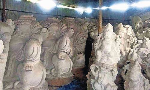 பின்னர், விநாயகர் சதுர்த்திக்கு ஒரு மாதத்திற்கு முன் ஆர்டர் பெற்று சிலைகளை விற்பனை செய்வது வழக்கமாகும். இந்தாண்டு வரும் 22ம் தேதி விநாயகர் சதுர்த்தி விழா கொண்டாடப்பட உள்ளது. சிலை தயாரிப்பு நிறுவனம் வழக்கம் போல் சிலைகளை வடிவமைத்து விற்பனைக்கு தயாராக வைத்திருந்தனர்.இந்நிலையில், கொரோனா தொற்று பரவல் காரணமாக விநாயகர் சதுர்த்தி விழாவினை எளிமையாக கொண்டாட வேண்டும் என அரசு அறிவுறுத்தியுள்ளது. அதில், பொது இடங்களில் பிரம்மாண்ட விநாயகர் சிலைகளை பிரதிஷ்டை செய்து வழிபட தடை விதித்து, வீட்டில் சிறிய சிலைகளை வைத்து வழிபட வேண்டும் என தெரிவிக்கப்பட்டு உள்ளது. அரசின் விதிமுறையை மீறினால் கடும் நடவடிக்கை எடுக்கப்படும் என்றும் எச்சரிக்கப்பட்டுள்ளது. இதனால், தற்போது விநாயகர் சிலைகள் தயாரிப்புகளில் ஈடுபட்டுள்ள நிறுவனங்கள் மற்றும் அதில் பணிபுரியும் தொழிலாளர்கள் கடுமையாக பாதிப்படைந்துள்ளனர். அரசின் உத்தரவால் விற்பனையின்றி 20 ஆயிரத்திற்கும் மேற்பட்ட விநாயகர் சிலைகள் குடோன்களிலேயே தேக்கமடைந்துள்ளன.இதனால், சிலைகள் உற்பத்தி நிறுவனத்திற்கு பல லட்ச ரூபாய் மதிப்பில் நஷ்டம் ஏற்பட்டுள்ளது. சிலைகள் விற்பனை செய்யக்கூடாது என்ற போலீசாரின் கடும் கெடுபிடியால் சிலை தயாரிப்பு உரிமையாளர்கள் மற்றும் வியாபாரிகள் தயாரித்த சிலைகளை என்ன செய்வதென தெரியாமல் தவித்து வருகின்றனர்.