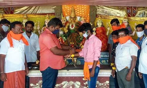 பல்லடம்: விநாயகர் சதுர்த்தி விழா, ஆக., 22ல் கொண்டாடப்பட உள்ளது. இதை முன்னிட்டு, திருப்பூர் தெற்கு ஒன்றிய இந்து முன்னணி சார்பில், காப்பு கட்டுதல் நிகழ்ச்சி, பல்லடம் திருப்பூர் ரோடு, அருள்புரம் அருகே உள்ள விநாயகர் கோவிலில் நடந்தது. தெற்கு ஒன்றிய மாவட்ட செயற்குழு உறுப்பினர் அருணாச்சல மூர்த்தி தலைமை வகித்தார். ஒன்றிய துணைத் தலைவர்கள் கார்த்தி, மற்றும் ராஜ்குமார் ஆகியோர் முன்னிலை வகித்தனர். இந்நிகழ்ச்சியில், விநாயகர் சிலை பிரதிஷ்டை விழாவில் பங்கேற்கும் நிர்வாகிகளுக்கு, பூசாரிகளும்; குழுவினர்களுக்கு, நிர்வாகிகளும் காப்புகளை அணிவித்தனர். மாவட்ட, ஒன்றிய கிளை நிர்வாகிகள், உறுப்பினர்கள் பங்கேற்றனர்.