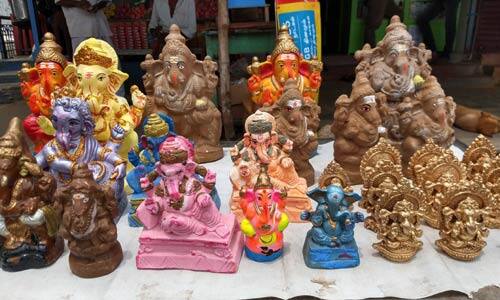 கருமத்தம்பட்டி: சதுர்த்தி விழாவை ஒட்டி, குட்டி, குட்டி விநாயகர் சிலைகள் விற்பனை சூடுபிடித்துள்ளது. விநாயகர் சதுர்த்தி விழா நாளை நாடு முழுவதும் கொண்டாடப் படுகிறது. கொரோனா வைரஸ் பரவல் காரணமாக, பொது இடங்களில் விநாயகர் சிலைகள் பிரதிஷ்டை செய்து வழிபட, தமிழக அரசு தடை விதித்துள்ளது. இதனால், வீடுகளில் வைத்து வழிபடும் வகையில் குட்டி, குட்டியாக விநாயகர் சிலைகள் தயாரிக்கப்பட்டு, விற்பனைக்கு வந்துள்ளன. கருமத்தம்பட்டி, சூலூர் உள்ளிட்ட பகுதிகளில் சிறிய விநாயகர் சிலைகள் விற்பனை சூடுபிடித்துள்ளது. பொதுமக்கள் மற்றும் இந்து இயக்கத்தினர் சிலைகளை வாங்கி செல்வதில் ஆர்வம் காட்டி வருகின்றனர். இந்நிலையில், விநாயகர் சிலைகளை விற்க போலீசார் கெடுபிடி காட்டுவதாக புகார் எழுந்துள்ளது. பொது இடங்களில் வைக்கத்தான் அரசு தடை விதித்துள்ளது. கோவில்களில், வீடுகளில் வைத்து தடை இல்லை என, இந்து இயக்கத்தினர் கூறினர்.