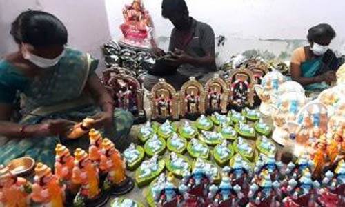 திருப்பரங்குன்றம்: மதுரை விளாச்சேரியில் நவராத்திரிக்காக கொலு பொம்மைகள் தயாராகி வருகின்றன. இங்கு 200க்கும் மேற்பட்ட குடும்பங்கள் பொம்மை தயாரிப்பில் ஈடுபட்டுள்ளனர். சீசனுக்கு தகுந்தவாறு சுவாமி சிலைகள், அரசியல் தலைவர்கள் சிலைகள், 3 இஞ்ச் முதல் 15 அடி உயரம் வரை விநாயகர் சிலைகள் மற்றும் இரண்டரை அடி உயர மெகா சைஸ் அகல் விளக்குகள் ஆகியன களிமண், காகிதகூழ், சிமென்ட் ஆகியவற்றால் தயாரிக்கின்றனர். நவராத்திரி விழாவிற்காக தற்போது கொலு பொம்மைகள் தயாரிக்கப்படுகின்றன. தொழிலாளர்கள் ராமலிங்கம், ஹரிகிருஷ்ணன் கூறியதாவது: இந்தாண்டு நவ நரசிம்மர், யோக நரசிம்மர், நவசக்தி, அஷ்ட பைரவர்,ராமர், கிருஷ்ணர், பதஞ்சலி முனிவர் சிலைகள் தயாரித்துள்ளோம். களிமண், காகிதகூழ் ஆகியவற்றால் சிலைகள் தயாரிக்கிறோம். கொரோனாவால் 5 மாதங்கள் தொழில் முடங்கியது, என்றனர்.