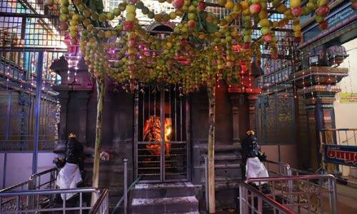 திருச்சி: திருச்சி மலைக்கோட்டை விநாயகர் கோவிலில் விநாயகர் சதுர்த்தி விழா ஆண்டுதோறும் சிறப்பாக நடைபெறும். இந்தாண்டு, ஊரடங்கு உத்தரவு அமலில் உள்ளதால், விநாயகர் சதுர்த்தியை முன்னிட்டு, திருச்சி மலைக்கோட்டை மாணிக்க விநாயகர் கோவில் மெகா சைஸ் கொல்கட்டை படைக்கப்படாமல் தினசரி பூஜை நடத்தப்பட்டு, பழங்களால் பந்தல் அலங்காரம் செய்யப்பட்டிருந்தது. அங்கு, பக்தர்கள் அனுமதிக்கப்படவில்லை.