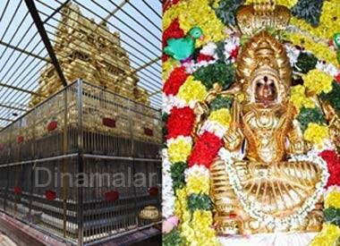 திருச்சி: திருச்சி மாவட்டம், சமயபுரம் மாரியம்மனை குளிர்விக்கும் வகையில், கருவறை சுற்றி அமைக்கப்பட்டுள்ள அகழியில், தண்ணீர் தேக்கி வைக்கப்படுகிறது. திருச்சி சமயபுரத்தில், அக்னி பிழம்பான காளியம்மன், கிழக்கு நோக்கி அமர்ந்ததால், மாரியம்மனாக மாறி, சாந்த சொரூபியாக அமர்ந்திருக்கிறாள் என நம்பப்படுகிறது. மாரியம்மன் உஷ்ணமானவள் என்பதால், அவளை குளிர்விக்க நீர், மோர், பானகம் வைத்து படைத்து, "குளுமை விழா கொண்டாடப்படுகிறது. அக்னி நட்சத்திர வெயில், திருச்சியில், 105 டிகிரியை தாண்டியுள்ளது. தகிக்கும் வெயிலில் தார்ச்சாலைகள் உருகி ஓடுகின்றன; அனல் காற்று வீசுகிறது. எனவே, வெயிலினால் அம்மனுக்கு உஷ்ணம் அதிகரித்து விடக்கூடாது என்பதற்காக, அம்மனின் கருவறையை சுற்றி அமைக்கப்பட்டுள்ள அகழியில், 24 மணி நேரமும், தண்ணீர் தேக்கி வைக்கப்படுகிறது. அம்மனை வேண்டி, முதன்முதலாக கிணறு வெட்டும் விவசாயிகள், தங்களது கிணற்றில் முதல் தண்ணீரை எடுத்து வைத்து, இந்த அகழியில் ஊற்றி, அம்மனை குளிர்ச்சிப்படுத்துகின்றனர்.