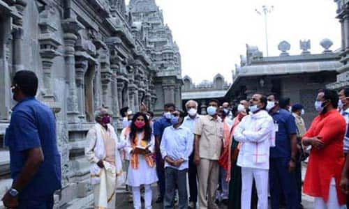 இதற்காக முதல்வர் அதிகாலையில் யாதாத்ரியை அடைந்தார். கோவில் பாதிரியார்கள் பூதகும்பத்துடன் வேத மந்திரங்களின் முழக்கங்களுக்கிடையில் வரவேற்றனர். பாலாயத்தில் சிறப்பு பூஜைகளிலும் முதல்வர் கே.சி.ஆர் பங்கேற்றார். பின்னர் கோவில்களில் தரிசனம் செய்துவிட்டு, கோயிலின் பிரகாரங்களுக்குள் அமைந்ததுவாஜஸ்தமான் ஆகியவற்றை முதல்வர் ஆய்வு செய்தார். பிரதான கோயிலில் வரிசை கோடுகள், கல்யாண மண்டபம், உள் பிரகாரம் மற்றும் தரையையும் அவர் ஆய்வு செய்தார். கோயிலில் அமைக்கப்பட்டிருக்கும் லைட்டிங் அமைப்பு குறித்தும் அதிகாரிகளிடம் விசாரித்தார்.