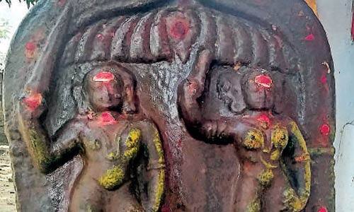 இடதுகரத்தில் உள்ள குத்துவாள் மேல்நோக்கி உள்ளது. சிற்பத்தின் கீழே ஏறுதழுவலின் அடையாளமாக இரண்டு மாடுகள் செதுக்கப்பட்டுள்ளன.வீரனின் அருகில் பெண் சிற்பம் உள்ளது. அந்த பெண் சதி மேற் கொண்டதன் அடையாளமாக வலது கைஎல் வடிவம் போன்று உயர்ந்துள்ளது.பெண் அணிகலன்கள் அணிந்துள்ளார்.பெண் அருகே சிறய அளவில் ஆன பெண் சிற்பம் கையில் மங்கல பொருட்களுடன் நிற்பது போல் செதுக்கப்பட்டுள்ளது. அவரை வான் உலக மங்கையர் என்று அழைப்பர். இறந்த வீரரை இருகரம் கூப்பி வானுலகம் அழைத்து செல்வர் என்ற நம்பிக்கையில் செதுக்கப்பட்டுள்ளது. இந்த சதிக்கல்லை கல்வீரம்மன் என வழிபடுகின்றனர். மாசி சிவராத்திரி,சித்ரா பவுர்ணமியில் சிறப்பு வழிபாடு நடத்துவர், என்றார்.