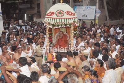 மதுரை: மனிதன் நினைப்பது நடப்பதில்லை. இறைவன் நினைப்பதே நடக்கும். பணம் சம்பாதிப்பது வரை, பலரும் நம்மைச் சுற்றி வருவர் என, சிருங்கேரி ஜகத்குரு பாரதி தீர்த்த சுவாமி, அருளுரை வழங்கினார். மதுரை, பை-பாஸ் ரோடு சிருங்கேரி சாரதா மடத்திற்கு, நேற்று சுவாமிகள் விஜயம் செய்தார். அங்கு அவர் பேசியதாவது: மதுரை நகரம் பரிசுத்தமானது. மீனாட்சி சுந்தரேஸ்வரர் அருட்கடாட்சம் பரவியிருக்கிறது. பகவான் தனது அருளை, இங்கு விசேஷமாக அனுக்கிரகிக்கிறார். ஆதிசங்கரர் இங்கு வருகை புரிந்திருக்கிறார். சாரதா பீட ஜகத்குருக்கள் வந்துள்ளனர். 20 ஆண்டுகளுக்குப் பிறகு, இங்கு வந்திருக்கிறேன். இது ஈஸ்வர கிருபையால் நடந்தது. பணத்திற்கு தவம்: மனிதன் நினைப்பது நடப்பதில்லை. நாம் நினைப்பது நடந்தால், பூமியில் நடக்க மாட்டோம். ஈஸ்வரன் நினைப்பதே நடக்கும் என, மனிதனுக்குத் தெரிந்தாலும், "நான் என்னும் அகங்காரம் அவனுக்குள் இருக்கிறது. பல சந்தர்ப்பங்களில் மனிதன் நினைப்பது நடக்காமல் போனாலும், அவனுக்குப் புத்தி வரவில்லை. அவன் நினைத்தது நடக்க வேண்டுமானால், மிகுந்த சாமர்த்தியம் வேண்டும். அந்த சாமர்த்தியத்தை பெற, தவம் செய்ய வேண்டும். இந்திரியங்களை அடக்க வேண்டும். இப்போது, பணம் வேண்டும் என்பதற்காக தவம் செய்கின்றனர். ஆனால், நம் முன்னோரோ பரமாத்மாவை நினைத்து தியானம் செய்தனர். பகவானுக்கு யார் மீதும் பாரபட்சம் இல்லை. தற்போது, பக்தி மிகவும் குறைந்து விட்டது. நாம் செய்யும் தவம், பூஜை மற்றவர் பார்க்க அல்ல. இறைவனுக்காக அவற்றைச் செய்ய வேண்டும். எனது பெயர் வரவேண்டும், நான்குபேர் என்னைப்பற்றி பேச வேண்டும் என்ற கொள்கையை மாற்றி விட்டு, "என்னை யாரும் புகழ வேண்டாம்; நான் பகவானுக்காகச் செய்கிறேன் என்ற உணர்வை, வளர்த்துக் கொள்ள வேண்டும். "இது வேண்டும், அது வேண்டும் என்ற சங்கல்பமும் கூடாது. பணம் மட்டும் இருந்தால், நாம் வாழவே முடியாத நிலைமை ஏற்படும். வயதானால் தான் துக்கம் தெரியும். பணம் சம்பாதிக்கும் வரை, நம்மைப் பலரும் சுற்றி வருவர். அது நின்றதும், வீட்டில் கூட யாரும் பேசுவதில்லை. தந்தையை முதியோர் இல்லத்தில் சேர்த்து விடுகின்றனர். மற்றவர்களுக்கு உபதேசம் செய்யும் பலரும், தாங்கள் கடைபிடிப்பதில்லை. பகவான் சேவை, குருசேவை செய்து, இறைவனின் நல்லருள் பெறவேண்டும். இவ்வாறு அவர் பேசினார். நரசிம்ஹ பாரதீ சுவாமியின் ஆராதனையை நடத்தி வைக்கிறார்.