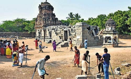 கள்ளக்குறிச்சி அடுத்த வீரசோழபுரத்தில் உள்ள பழமை வாய்ந்த அர்த்தநாரீஸ்வரர் கோவில் பராமரிப்பின்றி தொன்மை இழந்து காணப்பட்டது. கோவில் வளாகத்தில் செடி கொடிகள் மற்றும் முட்கள் வளர்ந்தும், கோவில் கட்டடத்தில் செடிகள் வளர்ந்தும் இருந்தது. வரலாற்று சிறப்பு மிக்க வீரசோழபுரம் அர்த்தநாரீஸ்வரர் கோவில், முற்றிலும் தொன்மை இழந்து காணப்பட்டது தொடர்பாக தினமலர் நாளிதழில் படத்துடன் செய்தி வெளியிடப்பட்டது. இதனையொட்டி, சென்னை தொண்டர் உழவார திருக்கூட்டம் ஒருங்கிணைப்பாளர் சிவபாலா தலைமையிலான குழுவினர் பலர் கோவில் வளாகம் முழுவதும் நேற்று சுத்தம் செய்து உழவார பணிகள் மேற்கொண்டனர். கோவில் உழவார பணியில் இந்து தமிழர் கட்சி நிறுவனர் ராம ரவிக்குமார் உட்பட பலர் பங்கேற்று ஒருங்கிணைத்தனர்.