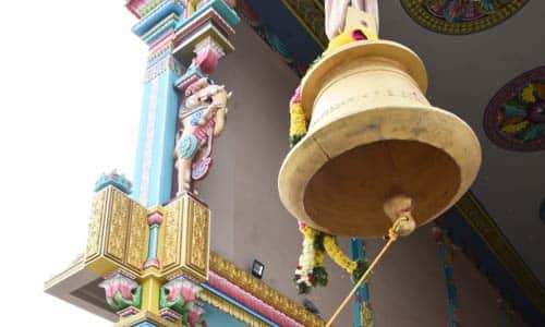 அதனையடுத்து கோயிலுக்கு பெரியதொரு மணி செய்ய அறங்காவலர்களால் திட்டமிடப்பட்டு, அதற்கான பொறுப்பு கோ யில் மணி செய்வதில் ஆறு தலைமுறையாக கைதேர்ந்த திருவாரூர் மாவட்டம் குடவாசல் தாலுக்கா நாளாம் கட்டளை கிராமத்தை சேர்ந்தவரும், விஸ்வகர்மா வாழ்நாள் சாதனையாளர் விருது பெற்றவருமான தியாகராஜனிடம் ஒப்படைக்கப்பட்டது. தொடர்ந்து மெழுகு அச்சு தயாரிக்கப்பட்டு, அதில் வெண்கலம், காப்பர், வெள்ளி ஈயம், செம்பு கலந்து மணி வார்க்கப்பட்டு, ஓசை எழுப்பம் நாக்கு பித்தளையால், 1.5 டன் எடையுடன் பிரமாண்டமாக ஓம், என்ற பிரணவ மந்திரத்தின் ஓசையை எழுப்பும் விதமாக மணி தயாரிக்கப் பட்டுள்ளது. தியாகராஜன் மற்றும் அவரது மகன்கள் சீனிவாசன், பரந்தாமன் மற்றும் உறவினர்கள் சேர்ந்து மூன்று மாதத்தில் இந்த மணியை செய்து முடித்துள்ளனர். அதனை தொடர்ந்து முறைப்படி நாகராஜ பத்தரால் விஸ்வகர்மா பூஜைகள் செய்யப்பட்டு கிரேன்மூலம் வாகனத்தில் ஏற்றி கோயிலுக்கு அனுப்பிவைக்கப்பட்டது. தொடர்ந்து நேற்று திருவோணமங்கலம் ஸ்ரீ சங்கடஹர மங்கல மாருதி ஆஞ்சநேயர் கோவிலில் அமைந்துள்ள கோதண்ட ராமர் சன்னதியில் பிரமாண்ட மணி வைக்கப்பட்டு ரமணி அண்ணா தலைமையில் பட்டாச்சாரியார்கள் சிறப்பு பூஜைகளை நடத்தி வைத்தனர் தொடர்ந்து கிரேன் மூலம் பிரமாண்ட மணி கோவிலை வலம் வந்தது பின்னர் ஆஞ்சநேயர் கோதண்டராமர் மற்றும் லக்ஷ்மி நரசிம்மர் சன்னதிகளில் பிரமாண்டம் மணியை ரமணி அண்ணா அறங்காவலர்கள் ஒலிக்கச் செய்தனர் நிகழ்ச்சியில் திரளான பக்தர்கள் கலந்து கொண்டு மகாமணி பூஜையை தரிசித்தனர்.