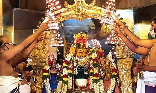 ஆறுமுகம் கொண்ட சண்முகர், வள்ளி, தெய்வானைக்கு 16 வகையான திரவிய அபிஷேகங்கள் முடிந்து சிறப்பு அலங்காரமாகி, சண்முகரின் ஆறுமுகங்களுக்கும் ஆறு சிவாச்சார்யார்களால் சகஸ்ரநாம அர்ச்சனை செய்யப் படுகிறது. ஆறுமுகங்களுக்கும் சமகாலத்தில் தீபாராதனைகள் நடக்கிறது. சூரசம்ஹாரம்: தினம் இரவு 7:00 மணிக்கு தந்தத் தொட்டி விடையாத்தி சப்பரத்தில் சுவாமி எழுந்தருளி கோயில் திருவாட்சி மண்டபத்தை ஒருமுறை வலம் சென்று அருள் பாலிக்கிறார். முக்கிய நிகழ்வாக நவ. 19 கோயில் பணியாளர்கள் திருக்கண்ணில் வேல் வாங்குதல், 20ல் சூரசம்ஹாரம், 21ல் மூலவர் முன்பு தயிர்சாதம் படைக்கப்பட்டு பாவாடை நைவேதன தரிசனம் நடக்கும்.