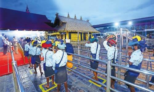 கூடுதல் பக்தர்களுக்கு அனுமதியா?: சபரிமலையில் மண்டல கால ஏற்பாடுகள் தொடர்பாக அனைத்து துறை அதிகாரிகளுடன் ஆலோசனை நடத்திய பின் கேரள தேவசம்போர்டு அமைச்சர் கடகம்பள்ளி சுரேந்திரன் கூறியதாவது: கொரோனா கட்டுப்பாடுகளுக்கு உட்பட்டும் கேரள ஐகோர்ட் உத்தரவின் படியும் சபரிமலையில் மண்டல காலத்தில் வரும் பக்தர்களுக்கு வசதிகள் செய்யப்பட்டுள்ளன. பக்தர்களுக்காக குடிநீருக்கு சிறப்பு வசதி ஏற்படுத்தப்பட்டு உள்ளது. பம்பையில் திறக்கப்பட்டுள்ள சிறப்பு கவுண்டரில் 200 ரூபாய் செலுத்தினால் ஸ்டீல் பாட்டிலில் ஒரு லிட்டர் தண்ணீர் கிடைக்கும். தரிசனம் முடிந்து திரும்பும் போது கவுன்டரில் அந்தபாட்டிலை திருப்பி கொடுத்தால் பணம் திரும்ப கிடைக்கும். சரல்மேடு ஜோதிநகர் மாளிகைப்புறம் ஆகிய இடங்களில் பாட்டிலில் தண்ணீர் நிரப்புவதற்கான வசதி செய்யப்பட்டுள்ளது. பம்பை முதல் சன்னிதானம் வரை உள்ள பாதையில் ஐந்து இடங்களில் அவசர சிகிச்சை மையங்கள் அமைக்கப்பட்டுள்ளன. பம்பையில் 20 ஆம்புலன்சுகள் உள்ளன. சபரிமலையில் தற்போது அனுமதிக்கப்பட்டுள்ள பக்தர்கள் வந்து செல்வது கண்காணிக்கப்படும். கூடுதல் பக்தர்களை அனுமதிக்கலாம் என்ற நிலை உருவானால் சுகாதாரத்துறை மற்றும் முதல்வர் பினராயி விஜயனிடம் ஆலோசித்து முடிவு அறிவிக்கப்படும். இவ்வாறு அவர் கூறினார்.
