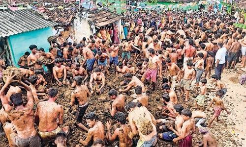 இங்கு ஆண்டுதோறும் தீபாவளி பண்டிகைக்கு அடுத்துவரும் நான்காவது நாளில், சாணியடி திருவிழா கொண்டாடப்படுகிறது. நடப்பாண்டு விழா நேற்று காலை துவங்கியது. முன்னதாக கிராமத்தில் உள்ள பசுமாடுகளின் சாணம் சேகரிக்கப்பட்டு, கோவிலின் பின்புறம் குவிக்கப்பட்டது. இதை அடுத்து அலங்கரிக்கப் பட்ட பீரேஸ்வரருக்கு, சிறப்பு பூஜைகள் செய்து, கிராம மக்கள் சட்டை அணியாமல் கோவிலுக்கு சென்றனர். பின், கொட்டி வைக்கப்பட்ட சாணத்தை, உருண்டைகளாக பிடித்து, ஒருவர் மீது ஒருவர் வீசி எறிந்து, கொண்டாடினர். பல்வேறு பகுதிகளில் இருந்து வந்த மக்கள் விழாவை ரசித்தனர். பின் அனைவரும் குளத்தில் குளித்து விட்டு, பீரேஸ்வரரை வழிபட்டனர்.