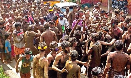 தாண்டிக்குடி : திண்டுக்கல் மாவட்டம் தாண்டிக்குடியில் முத்தாலம்மன், பட்டாளம்மன் கோயில் திருவிழாவில் பக்தர்கள் உடல் முழுவதும் சேற்றை பூசிக் கொண்டு (சேத்தாண்டி வேடம்) ஊர்வலமாக வந்து நேர்த்திக்கடன் செலுத்தினர்.