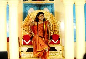 கடவுளாக நித்யானந்தா: பெங்களூரு பிடதி தியான பீடத்தின் பிரதான அரங்கில், கருவறை போன்ற ஒரு அறை இருக்கும். நித்யானந்தா வேறு வழியாக அந்தக் கருவறைக்குள் வந்து அங்குள்ள தங்க சிம்மாசனத்தில் உட்கார்ந்து கொள்வார். கோவில்களில் நடப்பது போல, கதவு திறக்கப்படும். அவருக்கு முன்பாக அவரது சீடர்கள் ஐந்தாறு பேர் உட்கார்ந்து கொண்டு, நித்யானந்தாவுக்கு அபிஷேகம், ஆடை சார்த்துதல் போன்ற வழிபாடுகளை பாவனையாக செய்வர். இறுதியில், கோவில்களில் நடப்பதைப் போல நித்யானந்தாவுக்கு அடுக்குத் தட்டு தீபாராதனை நடக்கும். பூஜை முடிந்த பின், அவர் உபதேசம் செய்வார். அதில் பகவத் கீதை சுலோகங்களை சொல்லி அதற்கு விளக்கம் அளிப்பார்.