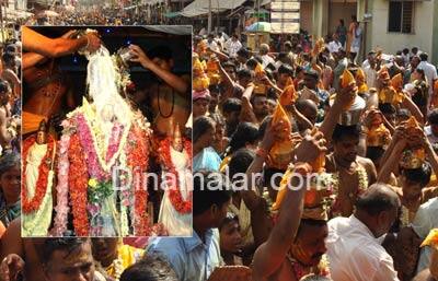 திருப்பரங்குன்றம் சுப்பிரமணிய சுவாமி கோவிலில், வைகாசி விசாக பால்குட திருவிழா, நேற்று நடந்தது. இதையொட்டி, நேற்று அதிகாலை ஐந்து மணிக்கு, ஆறுமுகம் கொண்ட சண்முகர், வள்ளி, தெய்வானைக்கு சிறப்பு பாலாபிஷேகம் நடந்தது.குடம் குடமாக பாலாபிஷேகம்: காலை 7 மணிக்கு, வள்ளி, தெய்வானையுடன் சண்முகர் புறப்பாடாகி, விசாக கொறடு மண்டபத்தில் எழுந்தருளினார்.சுற்றியுள்ள பகுதிகளில் இருந்து, ஆயிரக்கணக்கான பக்தர்கள் தலையில் பால் குடங்களை சுமந்து, பாத யாத்திரையாக வந்திருந்தனர். குடங்களில் இருந்த பால், சண்முகர், வள்ளி, தெய்வானைக்கு, பிற்பகல் 2 மணி வரை அபிஷேகம் செய்யப்பட்டது. பால் தவிர, இளநீர், பன்னீர், புஷ்பம், மயில், பறவை காவடிகளும் எடுத்து வந்தனர். பலர் முகங்களில், 20 அடி நீள வேலால் அலகு குத்தியும், முதுகில் அலகு குத்தி தேர் இழுத்தும் வந்து, நேர்த்திக் கடன் செலுத்தினர்.