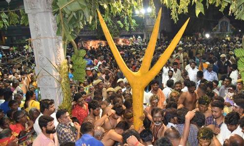 பழநி மாரியம்மன் கோயிலில் திருக்கம்பம் ஊன்றும் விழா