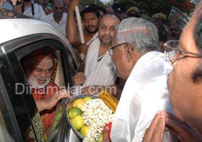 கரூர்: கரூருக்கு வந்த சிருங்கேரி ஸ்ரீ ஸ்ரீ பாரதி தீர்த்த மஹா ஸ்வாமிகளுக்கு நேற்று மாலை பக்தர்கள் சார்பில் உற்சாக வரவேற்பு அளிக்கப்பட்டது. சிருங்கோரி ஸ்ரீ ஸ்ரீ பாரதி தீர்த்த மஹா ஸ்வாமிகள் கரூரில் வரும் 8 ம் தேதி வரை பல்வேறு நிகழ்ச்சிகளில் கலந்து கொள்கிறார். அதற்கான நேற்று மாலை 6.30 மணிக்கு திண்டுக்கல்லில் இரு ந்து கார் மூலம் கரூர் பசுபதீஸ்வரா கோவிலுக்கு வந்தார். அவருக்கு கரூர் சாரதா பீடம் மற்றும் பக்தர்கள் சார்பில் வரவேற்பு அளிக்கப்பட்டது. அதை தொடர்ந்து அலங்கரிப்பட்ட வாகனத்தில் ஸ்ரீ ஸ்ரீ பாரதி தீர்த்த மஹா ஸ்வாமிகள் ஊர்வலமாக புறப்பட்டு, முக்கிய வீதிகள் வழியாக கரூர் அரவிந்த் டிரேடர் வணிக வளாகத்தை சென்றார். அங்கு சிறப்பு பூஜைகள் நடந்தது. இன்று (7ம் தேதி) காலை 9 மணிக்கு சிருங்கேரி ஸ்வாமிகள் நெரூர் ஸ்ரீ பிரமேந்திராள் அதிஷ்டானம் செல்கிறார். மாலை 5 மணிக்கு பக்த மஹா ஜனங்களுக்கு தரிசனம் ஆகிய நிகழ்ச்சிகள் நடக்கிறது. நாளை (8 ம் தேதி) காலை சிறப்பு பூஜை, மதியம் 12.30 மணிக்கு பக்தர்களுக்கு தீர்த்த பிரசாதம் வழங்கப்படுகிறது. ஏற்பாடுகளை ஸ்ரீ சிருங்கேரி சங்கர மடம், ஸ்ரீ ராஜ ராஜஸ்வரி ஆலய நிர்வாகிகள் செய்து வருகின்றனர்.