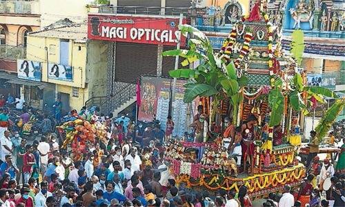 ஸ்ரீபெரும்புதுார் - ஸ்ரீபெரும்புதுார் பூதபுரீஸ்வரர் கோவில் தேரோட்டம், நேற்று விமரிசையாக நடந்தது.ஸ்ரீபெரும்புதுாரில், சவுந்தரவள்ளி அம்பாள் சமேத பூதபுரீஸ்வரர் கோவில் உள்ளது.இங்கு ஆண்டுதோறும் பங்குனி உத்திர பெருவிழா, 10நாட்கள் விமரிசையாக நடப்பது வழக்கம். இந்தாண்டு விழா, 19ம் தேதி, கொடியேற்றத்துடன் துவங்கியது.விழாவின் முக்கிய தேரோட்டம், நேற்று நடைபெற்றது. அலங்கரிக்கப்பட்ட தேரில் பூதபுரீஸ்வரர் எழுந்தருளினார். காந்தி சாலை, திருவள்ளூர் பிரதான சாலை, திருமங்கையாழ்வார் சாலை, தேரடி சாலை வழியாக பவனி வந்த தேரை, ஏராளமான பக்தர்கள் வடம் பிடித்து இழுத்தனர். தேர் செல்லும் சாலை முழுதும், தண்ணீர் ஊற்றி, பக்தர்கள் கோலங்கள் போட்டனர்.