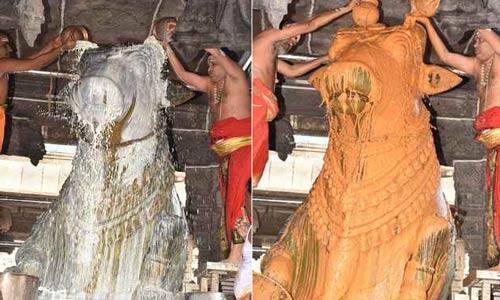 திருவண்ணாமலை: திருவண்ணாமலை, அருணாசலேஸ்வரர் கோவிலில், பிரதோஷ பூஜை நடந்தது. இதையொட்டி கோவிலில் உள்ள, அதிகார நந்தி, சிறிய நந்தி, ஆயிரங்கால் மண்டபம் எதிரிலுள்ள பெரிய நந்தி உள்ளிட்டவற்றிற்கு, தேன், பால், பன்னீர், தயிர், மஞ்சள், இளநீர் உள்ளிட்ட பல்வேறு வகை பொருட்களால் சிறப்பு அபிஷேகம் நடந்தது. தொடர்ந்து, உற்சவ மூர்த்திகளான அருணாசலேஸ்வரர், உண்ணாமுலையம்மன், கோவில் மூன்றாம் பிரகாரத்தில் வலம் வந்து, பக்தர்களுக்கு அருள்பாலித்தனர். சுவாமியை, ஏராளமான பக்தர்கள் வழிபட்டனர்.