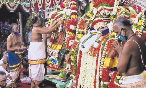 உற்சவர் கபாலீஸ்வரர் – கற்பகாம்பாள்மணக்கோலத்தில், பக்தர்களுக்கு அருள் பாலித்தனர். சென்னை , மயிலாப்பூரில் அமைந்துள்ள கபாலீஸ்வரர் கோவிலில், பங்குனி மாதப் பெருவிழாவின், 10ம் நாளான நேற்று, திருக்கல்யாண வைபவம் நடந்தது. நேற்று காலை , திருக்கூத்தபெருமான் திருக்காட்சி, ஐந்திருமேனிகள் விழா நடந்தது. அதை தொடர்ந்து, தீர்த்தவாரி நடந்தது. மாலை , 6:30 மணிக்கு, புன்னை மரத்தடியில் உமாதேவியார் மயிலுருவுடன், மாதேவரை வழிபடல் நிகழ்ச்சி நடந்தது. இதையடுத்து, உற்சவர் கபாலீஸ்வரர் – கற்பகாம்பாள் திருமண வைபவம் நடந்தது. இதில், ஏராளமான பக்தர்கள் பங்கேற்றனர். இதையடுத்து, கைலாய ஊர்தி நிகழ்ச்சி நடந்தது. அதை தொடர்ந்து, கொடி இறக்கத்துடன் பங்குனி விழா நிறைவு பெற்றது. இன்று பந்தம் பறி விழா, நாளை விடையாற்றி விழா நடக்கிறது.