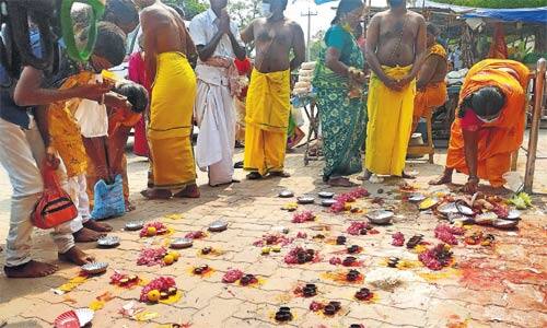 மடப்புரம் பத்ரகாளியம்மன் கோயிலுக்கு அதிகாலை முதலே ஏராளமான பக்தர்கள் வந்தனர்.கோயில் பூட்டப்பட்டிருந்ததால் வாசலில் விளக்கேற்றி கோபுரத்தை வணங்கி சென்றனர்.வைகை ஆற்றில் முன்னோர்களுக்கு திதி, தர்ப்பணம் கொடுக்கும் பக்தர்கள் அதன்பின் புஷ்வனேஸ்வரர் கோயிலில் மோட்ச விளக்கேற்றி வழிபடுவார்கள். கோயிலுக்குள் அனுமதி மறுக்கப்பட்டதால் பலரும் வாசலிலேயே மோட்ச விளக்கை ஏற்றி விட்டு கோபுரத்தை வணங்கி சென்றனர். மடப்புரம் பூஜை பொருள் விற்பனை செய்யும் சீனிவாசன் கூறுகையில்; மடப்புரம் கோயிலை நம்பி 100க்கும் மேற்பட்டோர் எலுமிச்சை மாலை, தேங்காய், பழம் உள்ளிட்டவை விற்பனை செய்து வருகிறோம்,கோயில் திறக்கப்படாததால் பக்தர்கள் பொருட்கள் வாங்காமல் கோபுரத்தை மட்டும் வணங்கி செல்கின்றனர். வியாபாரமின்றி வறுமையில் உள்ளோம்,என்றார்.