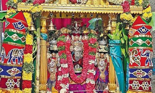 கள்ளக்குறிச்சி : கள்ளக்குறிச்சி பெருமாள் கோவில் திருத்தேர் விழா, கொரோனா பரவலையொட்டி கோவில் வளாகத்திலேயே நடந்தது.
