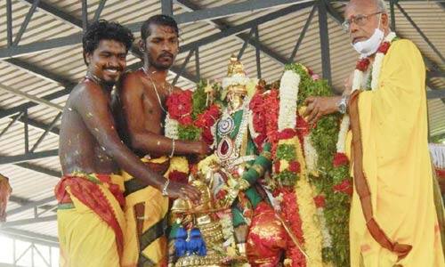 சத்யயுக சிருஷ்டி கோவிலில் தங்கக்குதிரை வாகனத்தில் கள்ளழகர்