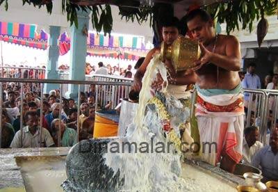 ஊத்துக்கோட்டை: உருவ ரூபம் கொண்டு பக்தர்களுக்கு அருள்பாலிக்கும் சுருட்டபள்ளி பள்ளிகொண்டேஸ்வரர் கோவில் சனிப் பிரதோஷ விழா நேற்று முன்தினம் கோலாகலமாக நடந்தது. ஆலகால விஷத்தை உண்ட மயக்கத்தில், சிவபெருமான், அன்னை பார்வதி தேவியின் மடியில் தலை வைத்து உறங்கும் கோலத்தில் பக்தர்களுக்கு இங்கு அருள்பாலிக்கிறார். சிவபெருமான் விஷத்தை உண்ட நாள், சனிக்கிழமை என்பதால், சனிப்பிரதோஷம் விசேஷம். இவ்வாண்டின் இரண்டாவது சனிப் பிரதோஷம் நேற்று முன்தினம் சுருட்டபள்ளி பள்ளிகொண்டேஸ்வரர் கோவிலில் நடந்தது. வால்மீகீஸ்வரர், மரகதாம்பாள் ஆகியோருக்கு சிறப்பு அபிஷேக ஆராதனைகள் நடந்தது. மாலை 4.30 மணிக்கு, பிரதோஷ நந்திக்கு பால், பழம், பன்னீர், சந்தனம் உட்பட பல்வேறு பொருட்களால் அபிஷேகங்கள் நடந்தன. உற்சவர், அம்பாளுடன் ரிஷப வாகனத்தில் எழுந்தருளி, கோவிலை, மூன்று முறை வலம் வந்து, பக்தர்களுக்கு அருள்பாலித்தார். இவ்விழாவில் திருவள்ளூர், பொன்னேரி, சென்னை மற்றும் சுற்றுப்புற பகுதிகளில் இருந்து திரளான பக்தர்கள் கலந்து கொண்டனர்.