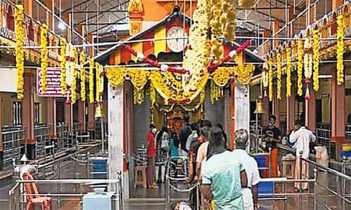 ஷிவமொகா: ஷிவமொகாவின் சாகர் அருகே உள்ள சிகந்துாரில் பிரசித்தி பெற்ற சவுடேஸ்வரி அம்மன் கோவில் உள்ளது. இரண்டு மாத ஊரடங்குக்கு பின், கடந்த 5ல் திறக்கப்பட்டது. இந்த கோவிலில் தினமும் நடக்கும் சிறப்பு பூஜைகளுக்கு பக்தர்கள் திரண்டு வருவது வழக்கம். இரண்டு மாதத்துக்கு பின் கோவில் திறக்கப்பட்டதால் எதிர்ப்பார்ப்பை மீறி அதிக அளவில் பக்தர்கள் திரண்டு வர ஆரம்பித்துள்ளனர். இதனால் கோவிலில் தினமும் கூட்ட நெரிசல், தள்ளு முள்ளு ஏற்படுகிறது. பக்தர்களில் பெரும்பாலானோர் முக கவசம் அணியவில்லை ; சமூக விலகலையும் கடைபிடிக்கவில்லை . தற்போ து சுவாமி தரிசனத்துக்கு மட்டும் அனுமதி அளிக்கப்பட்டுள்ளது. பிரசாதம் , அன்னதானம், தேங்காய் உடைக்க அனுமதி இல்லை . அதிக பக்தர்களை கட்டுப்படுத்த முடியாமல் கோவில் நிர்வாகிகள் திணறி வருகின்றனர்.