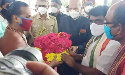ஸ்ரீ பள்ளிகொண்டீஸ்வரர் சுவாமி அம்மையார் களை தரிசனம் செய்வதற்காக இன்று நாகலாபுரம் மண்டலம் சுருட்டப்பள்ளி வந்த தமிழக ஆளுநர் பன்வாரிலால் புரோகித் அவர்களுக்கு கோயில் சம்பிரதாயத்துடன் சிறப்பு வரவேற்பு ஏற்பாடு செய்தனர் . கோயில் அறங்காவலர் குழு தலைவர் முனிசேகர் ரெட்டி திருப்பதி வருவாய் அதிகாரி கனகநரசாரெட்டி, சித்தூர் கூடுதல் எஸ்பி மகேஷ் மற்றும் ஸ்ரீ பள்ளிகொண்டீஸ்வரர் கோவில் நிர்வாக அதிகாரி ரவீந்திர ராஜு சுருட்டப்பள்ளி தாசில்தார் சுப்பிரமணியம் மற்றும் கோயில் அறங்காவலர் குழு உறுப்பினர்கள் மற்றும் அதிகாரிகள் சிறப்பு வரவேற்பு ஏற்பாடு செய்ததோடு கோ- பூஜை நடத்தி ஸ்ரீ சர்வ மங்கலா - சமேத ஸ்ரீ பள்ளிகொண்டீஸ்வரர் சாமியை தரிசனம் செய்தார் .முன்னதாக பிரதோஷ நந்தீஸ்வரருக்கு சிறப்பு பூஜைகளை ஏற்பாடு செய்தனர் தொடர்ந்து சுவாமி அம்மையார்களை தரிசனம் செய்தவருக்கு கோயில் வேத பண்டிதர்கள் சிறப்பு ஆசீர்வாதங்கள் செய்தனர். அதனை தொடர்ந்து கோயில் அறங்காவலர் குழு தலைவர் மற்றும் நிர்வாக அதிகாரி சுவாமி அம்மையார்களின் தீர்த்த பிரசாதங்களை வழங்கியதோடு சாமி படத்தையும் வழங்கினார். பின்னர் ஆளுநர் நேற்று இரவு பன்வாரிலால் புரோகித் சென்னை ராஜ் பவன் திரும்பினார் என்பது குறிப்பிடத்தக்கது.