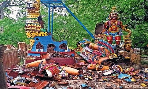 சில நாட்களுக்கு பின் ஜாமினில் அவர் வெளியில் வந்த நிலையில், அக்., 27ம் தேதி மீண்டும் பெரியசாமி கோவில் 15 அடி உயரமுள்ள பெரியசாமி சிலை உட்பட 5 சிலைகளும், செங்கமலையார் கோவிலில் 15 அடி உயரமுள்ள செங்கமலையார் சிலை உட்பட 13 சிலைகள் என சுட்ட மண்ணால் செய்யப்பட்ட மொத்தம் 18 சிலைகள் மர்ம நபர்களால் உடைக்கப்பட்டு சேதப்படுத்தப்பட்டன.