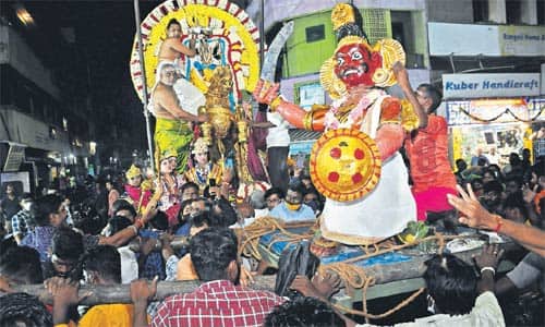 சென்னை: சென்னையில் தொடர்ந்து பெய்து வரும் கனமழையால், இந்தாண்டு சூரசம்ஹார வைபவம் நடத்தப்படவில்லை. இன்று திருக்கல்யாண வைபவம் நடத்தப்படுகிறது. கந்த சஷ்டி என்பது முருகப்பெருமான், சூரபத்மன் எனும் அரக்கனை வதம் செய்து, அரவணைத்துக்கொண்ட நாள் . இது சைவ சமயத்தவர்கள் பெருமையுடன் கொண்டாடும் ஒரு விழா . கனமழை காரணமாக, ஒரு சில கோவில்களில் மட்டுமே விழா நடத்தப்பட்டது. சில கோவில்களில் பக்தர்கள் இன்றி சூரசம்ஹாரம் நடந்தது. பிராட்வே கந்தக்கோட்டத்தில் நேற்று மாலை சூரசம்ஹாரம் துவங்கியது. முருகப்பெருமான் படை சூழ, யானை , சிங்கம், ஆடு உள்ளிட்ட ரூபங்களில் வந்த சூரபத்மனை வேலால் வதம் செய்யும் காட்சி அரங்கேறியது. பின், மாமரமாக மாறிய சூரன், அதை பிளந்த போது, சேவல் , மயிலாக மாறிய காட்சி நடந்தது. இந்த வைபவத்தில் பக்தர்கள் அனுமதிக்கப்படவில்லை. சில கோவில்களில் நட்சத்திரப்படி, இன்று சூரசம்ஹாரம் நடத்தப்படுகிறது.