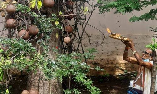 கோயிலில் மரங்களுக்கு பிறந்தநாள் கொண்டாடிய அர்ச்சகர்