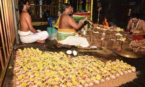 திருவண்ணாமலை: திருவண்ணாமலை அருணாசலேஸ்வரர் கோவிலில் உலக நன்மை வேண்டி, 1,008 சங்காபிஷேகம் நடந்தது. திருவண்ணாமலை அருணாசலேஸ்வரர் கோவிலில், நேற்று நடந்த மூன்றாம் நாள் தீப திருவிழாவில், உலக நன்மை வேண்டி, 1,008 சங்காபிஷேகம் நடந்தது. இதை முன்னிட்டு அருணாசலேஸ்வரர் மூல கருவறை எதிரில் சிறப்பு யாகசாலை அமைத்து, 1,008 சங்கு வைத்து சிறப்பு பூஜை நடத்தப்பட்டது. பின்னர், 1,008 சங்கு மூலம் பூஜை செய்யப்பட்ட புனித நீரை கொண்டு, அருணாசலேஸ்வரருக்கு, உச்சி கால பூஜையில் சிறப்பு அபிஷேகம் செய்யப்பட்டது.